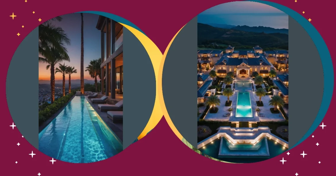 Wow! Just look at this amazing view. It’s like something out of a movie, right? This picture is the perfect example of “luxury places photography”—a super fancy house with a ridiculously awesome infinity pool overlooking a breathtaking sunset. Imagine lounging by the pool, sipping something fruity and refreshing, as the sun dips below the horizon, painting the sky in a million different shades. Talk about the ultimate chill-out zone! It’s totally making me wish I had a summer vacation right now!