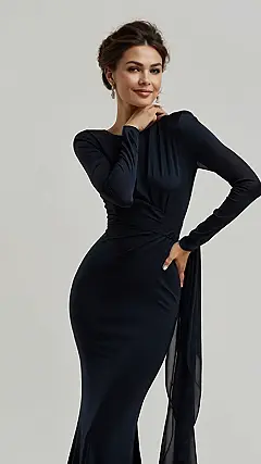 **Paragraph 1:** Whoa, check out this dress! It’s like something straight out of a glamorous movie. That sleek, black fabric looks super smooth and luxurious – like liquid midnight. The halter neck and that stunning mermaid tail are seriously next-level chic. Imagine yourself gliding across a dance floor in this bad boy – you’d totally outshine everyone! It’s the perfect blend of classic elegance and modern wow-factor. It’s a “classic silk dress” that screams sophistication, even if you’re just heading to the pizza place with friends.
