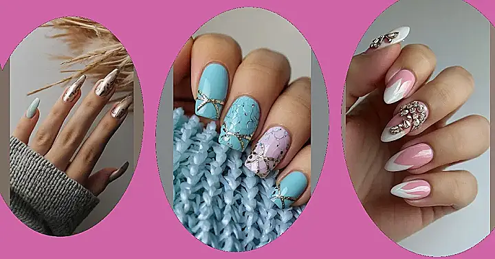 These nails are like a mini-vacation for your fingertips! Imagine cozying up with a hot chocolate on a snowy day, and these pastel blue and pink designs with sparkly accents are exactly what you’d want to see. They’re so soft and pretty, they’re practically begging you to snuggle up and watch a movie. Forget bulky winter coats, these nails bring the chill vibes in a way that’s totally chic. They’re the perfect way to add a touch of winter magic to your look without freezing your fingers off!