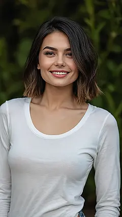 And let’s talk about showing off! A great short cut totally puts the spotlight on your face, like seriously saying “Hey, look at how awesome I am!” Check out how the wavy bob in the image frames her eyes and smile perfectly. You can rock it messy, sleek, or with cool waves, proving that having less hair doesn’t mean having less fun with your look. It’s all about feeling confident and ready to take on the world, one fabulous hair flip (or lack thereof) at a time.