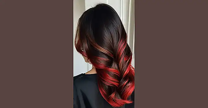 Want to spice up your dark locks without going totally blonde? Check out this hair color idea that’s like a secret weapon for brunettes! It’s like your regular brown hair decided to join a rock band, and these bright red highlights are totally the lead guitar. This isn’t just adding color; it’s adding some major personality that will make you stand out in the hallway.