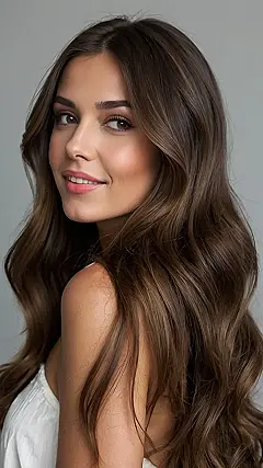 Let’s be real, brown hair gets a bad rap for being “basic.” But look at that gorgeous brunette in the picture! Her hair has subtle variations in brown, that creates depth and shine. Think of it like adding highlights with chocolate, caramel, or even a touch of coffee – it’s like giving your hair a delicious makeover. Suddenly, “basic” becomes “breathtaking,” and you’re rocking a style that’s totally you but with a little extra *oomph*.