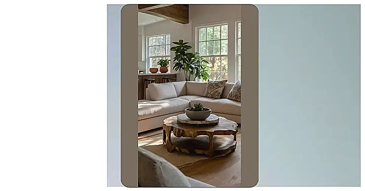 This living room is seriously chill! Imagine lounging on that comfy-looking couch, surrounded by plants and natural wood. It’s like stepping into a nature documentary, but instead of scary animals, you’ve got stylish pillows and a seriously cool coffee table that looks like it grew right out of the ground. The big windows bring the outside in, making the whole place feel super relaxed and connected to nature—totally organic modern vibes.