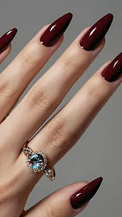 Those nails are seriously fierce! It’s like they’re ready to take on the world… or at least open a can of soda without breaking a sweat. The deep red color is totally giving off vampire vibes, but in a super stylish way. Forget Halloween, these nails are ready for a year-round spooky season! Just imagine all the cute nail art you could add, like tiny bats or spiderwebs.