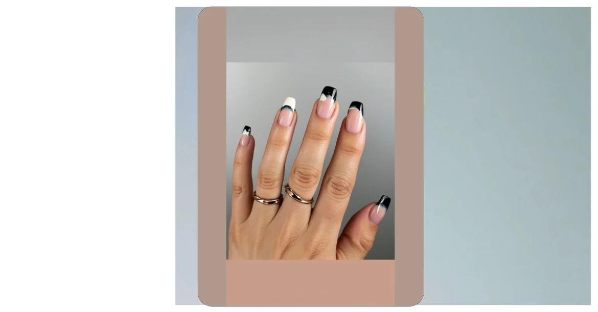 Imagine rocking these awesome nails to school! They’re like a super-cool, updated version of the classic French manicure. Instead of just plain white tips, you’ve got these sleek black and white color block designs with a hint of turquoise, that’s super stylish. It’s like, “Yeah, I know the rules, but I’m making them my own, one nail at a time!”