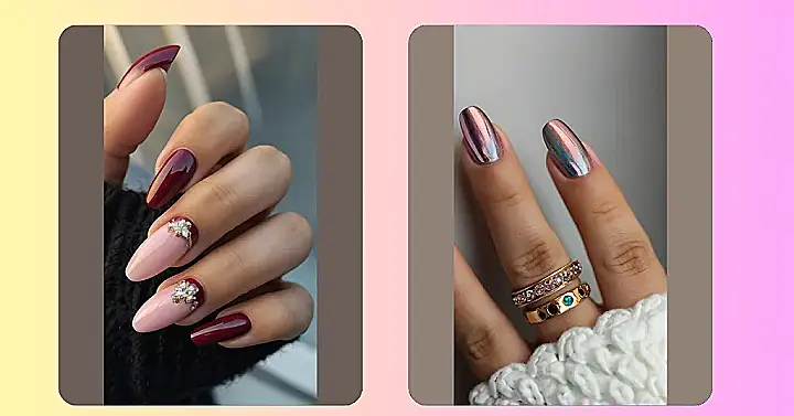 These nails are seriously next-level! It’s like they’re ready to go to a fancy party, or maybe just conquer a really tough math test. The combination of the soft pink and the rich burgundy is totally unexpected, but it totally works. Plus, those little jeweled accents? Obsessed! They’re like tiny tiaras for your fingertips, perfect for feeling like the queen you truly are.