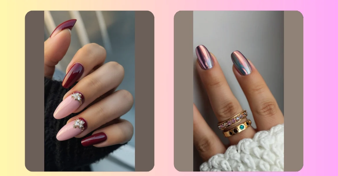 These nails are seriously giving off “fall vibes with a touch of sparkle.” The dark burgundy color is totally on trend, and that gold accent? Chef’s kiss! If your goal is to look like you just stepped out of a magazine, but still want to rock something totally you, these nail designs might be your next inspo!