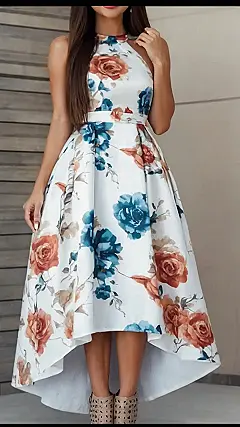 This dress is like a walk through a Parisian garden! It’s got those lovely floral patterns that scream “bonjour” and the flowing skirt is perfect for twirling around the Champs-Élysées. And don’t even get me started on those cute sandals! They’re just the finishing touch for a look that’s as stylish as a French café.