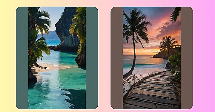 Imagine trading in your homework for a hammock on this beach! The colors in the sky are totally unreal, like someone went wild with the orange and purple crayons. Just picture yourself sipping a fruity drink under those palm trees, feeling the cool breeze, and watching the waves roll in. Stress? What stress?