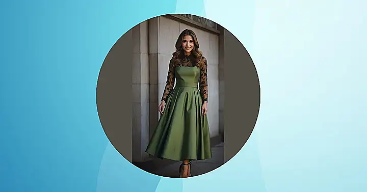 Imagine walking into a party in this dress! You’d be like a walking, talking, totally fabulous movie star. The color is super unique, the lace sleeves are a bit mysterious, and the whole look just screams “I’m here to have a good time…and maybe win a prize for best dressed!” So next time you want something special, try something classy like this, maybe it will give you superpowers, like the ability to get front-row tickets or a lifetime supply of pizza.