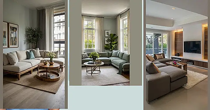 That coffee table is practically begging for a stack of books and a mug of hot chocolate. And check out those artsy pictures on the wall! It’s like someone raided their grandma’s attic, but then made it super stylish. This living room screams, “Come on in, kick off your shoes, and let’s binge-watch something awesome!” It’s the perfect mix of relaxed and put-together – just like that one friend who always looks effortlessly cool.