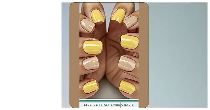 Looking at nails painted this sunny yellow is like getting a little jolt of happiness right on your fingertips. It’s the kind of color that makes you want to skip instead of walk and maybe even hum a cheerful tune. Paired up with that calm, creamy beige color, it’s like a perfect mix of bright energy and relaxed cool, totally ready for whatever fun is coming your way. Seriously, just seeing them makes you feel like you’ve got sunshine on your hands, even on a cloudy day.