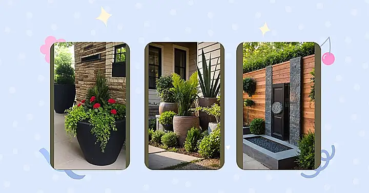 Think of planters as adding stylish accessories to your house, just like you would for an outfit, but these ones are way easier to deal with than finding matching socks. Look at all the different greens, pinks, purples, and yellows in that image! Planters let you play around with different plants and colours right by the door, creating your own little welcome party for anyone who visits (or just walks by and gets a little jealous). Plus, if a plant decides it’s had enough drama and wants to retire, it’s simple to swap it out without needing a whole excavation project. It’s decorating with plants, made easy and totally fun!