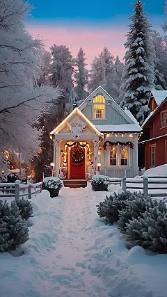 **Paragraph 1:** OMG, look at this adorable house! It’s straight out of a Christmas movie, right? All cozy and decked out in twinkling lights, with a bright red door just begging to be opened. The snow is so fluffy, it looks like a giant marshmallow blanket has covered everything. It totally captures that “Christmas Town aesthetic” – all warm and inviting despite the freezing temperatures. I bet hot cocoa and gingerbread cookies are waiting inside! Seriously, who wouldn’t want to live here?