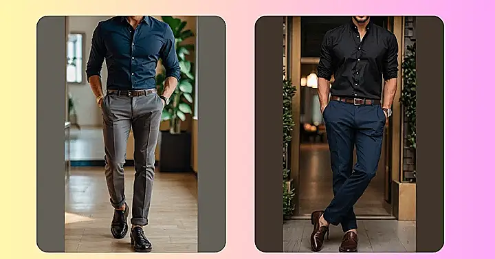 Want to look sharp without looking like you’re trying too hard? Check out this dude’s outfit! He’s rocking a button-down shirt and tailored pants, which is like the perfect recipe for “I woke up like this… but also spent a few minutes picking out my clothes.” This look proves you can totally be stylish without wearing a suit or anything too formal.