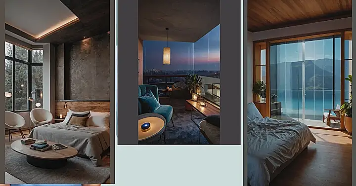 I can’t even tell if it’s evening or morning. Maybe it’s one of those magical times when the world is bathed in golden light and everything feels peaceful. The comfy furniture and the view are like a personal invitation to just sit back, relax, and enjoy the moment. It’s the kind of space where your brain can just switch off and you can let your imagination run wild. Maybe you’re daydreaming about adventures, or maybe you’re just enjoying the beautiful scenery. Whatever you’re doing, you’re definitely in a great mood!