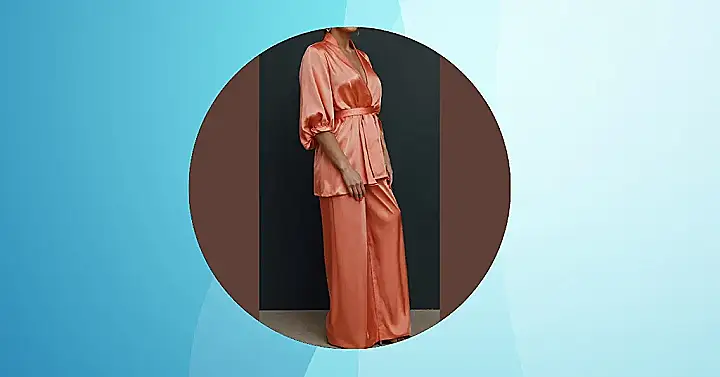This outfit is like a warm hug on a cool day – seriously comfortable and stylish! Imagine strolling through a farmer’s market, feeling amazing in this silky, coral-colored pantsuit. It’s the perfect blend of effortless chic and “I’ve got this” attitude. Forget frumpy, this is the kind of outfit that makes you feel confident and ready to take on the world, one peachy step at a time. It’s so versatile, too – dress it up with heels for a night out or keep it casual with flats for a daytime adventure.