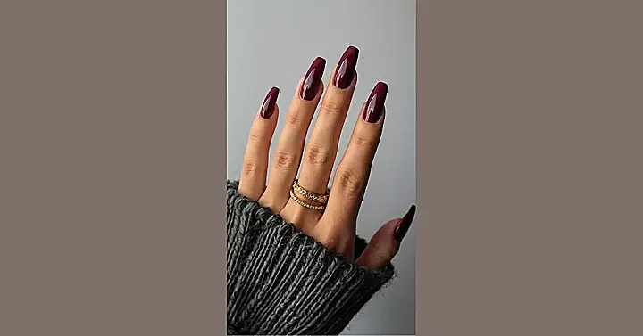These nails are like a cozy sweater for your fingertips! They’re long and elegant, just like those fancy snowflakes you see on Christmas cards. The deep, rich burgundy color is perfect for the holidays, making your hands look like they’re ready to sip hot chocolate by the fireplace (even if it’s actually just a warm cup of tea on a Tuesday afternoon).