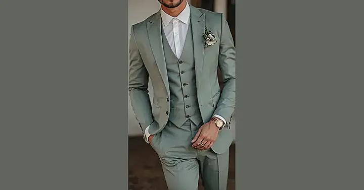 Forget the heavy black suits that turn you into a human sauna; summer is all about lighter shades and maybe even materials that let you breathe, unlike that plastic bag feeling. A bright white suit like this one looks amazing and definitely screams “summer event,” plus maybe light colors reflect the heat? (We’re not scientists, but let’s hope). Just try not to spill the wedding cake or grape juice on it, because trying to hide a stain on white is like trying to hide from your chores – impossible. But hey, at least you’ll look fresh… until you hit the dance floor, then all bets are off.