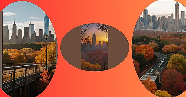 Even the skyscrapers seem to be leaning in to watch the show. And those cars driving along the winding road? Maybe they’re just enjoying the scenery. After all, you wouldn’t want to miss this chance to experience the magic of autumn in New York!