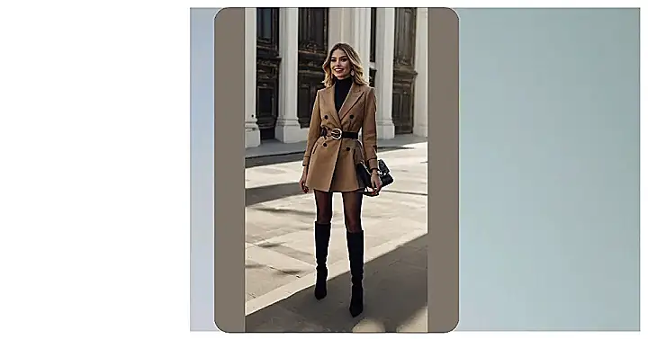 Getting ready for a spring dinner often feels like a mission: find something that looks cool, fits the slightly weird spring weather (is it warm or is it secretly trying to freeze you?), and says ‘I’m here for the food.’ This outfit? It’s basically the ultimate weapon. That blazer dress is like your stylish armor, the belt cinches you in like a superhero belt, and those boots mean you’re ready to kick off a great night (or maybe just kick off your shoes later). You’ll walk into that restaurant looking so sharp, the menu might just bow to you.