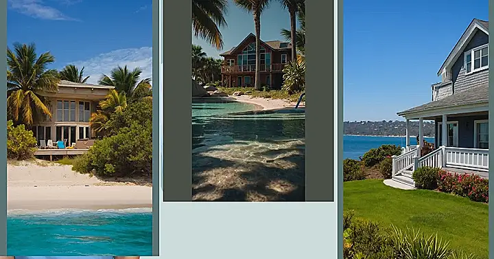 This picture is like a dream come true for any beach bum! It’s a cozy beach house, surrounded by swaying palm trees, with a sparkling pool that’s perfect for a refreshing dip. Imagine lounging in a hammock under the shade of a palm tree, sipping on a fruity drink, and listening to the gentle sound of waves crashing in the distance. This beach house is the ultimate getaway, offering a chance to escape the stress of everyday life and relax in paradise.