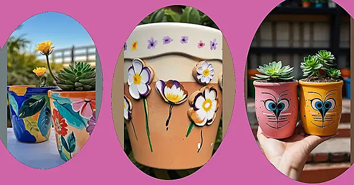 These aren’t your grandma’s boring terracotta pots! Check out these super cute flower pots that look like they’re about to tell you a joke or maybe ask for a snack. They’ve clearly had a serious makeover with some paint and a dash of imagination, turning them into mini-masterpieces. Who knew painting flower pots could be so much fun?