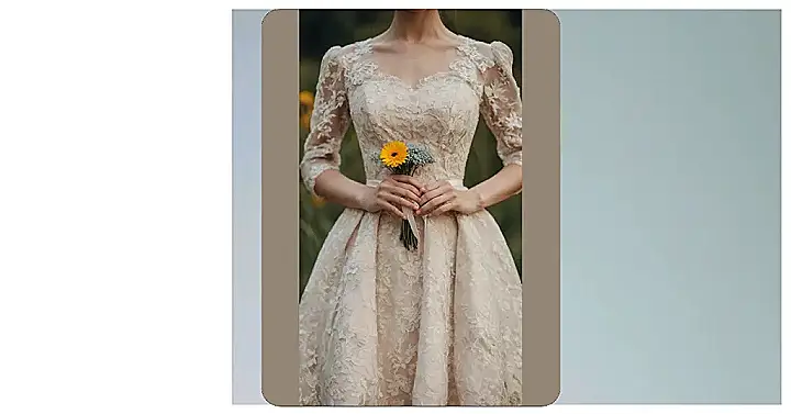 Look at that dress! It’s basically a wearable bouquet of sunshine and fancy lace. You could totally float into a room wearing this and make everyone stop and stare, probably wondering if you just arrived from a secret garden party. Those sleeves are like little works of art, and the way the skirt flows? Definitely gives off main character vibes. It’s the kind of design that makes you think, “Okay, maybe dressing up is kind of fun,” even if your usual style involves maximum comfort and minimal effort.