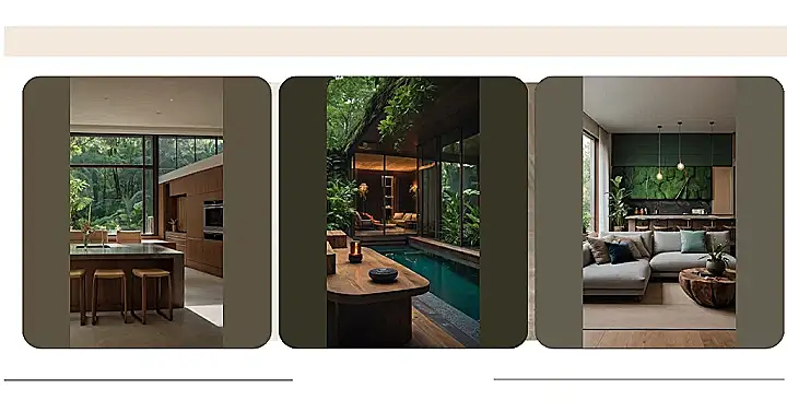With all that wood and greenery, you might just start growing your own leaves! But don’t worry, it’s just the vibe of this space. It’s like nature has come inside to hang out, and it’s totally awesome! You could easily spend your whole day relaxing on that sofa, reading a book, and watching the sun set through the big windows. It’s like a chill zone for your soul, and it’s totally giving us major nature vibes.