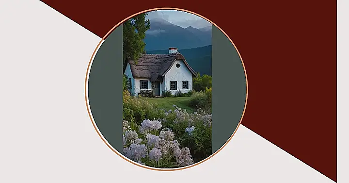 This adorable cottage looks like it popped right out of a fairytale! Imagine yourself waking up to the sound of birds chirping and the smell of fresh flowers. It’s like something out of a dream, with its thatched roof, white walls, and charming little windows. And the best part? It’s nestled right in front of a stunning mountain range, making it even more magical.