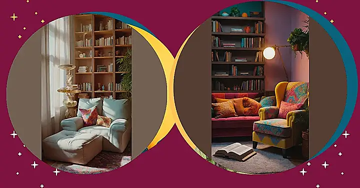 It’s basically a reading superhero’s secret lair disguised as a chill zone. That bookshelf is just begging for you to conquer it, one chapter at a time. You could spend hours lost in a fantasy world, learning about history, or just laughing at a funny story. And let’s be real, that chair looks like it’s giving you a silent invitation to nap afterwards!