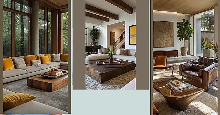 Seriously, those wooden panels are the star of the show! They’re not just decoration, they’re like giant pieces of modern art that add so much texture and warmth. It’s all very calm and natural feeling, you know, the kind of place where you’d actually want to, like, *live*. And the earthy tones on the cushions? Perfection! It’s a perfect example of an organic modern living room, blending nature’s beauty with modern style in a way that feels both relaxed and sophisticated.
