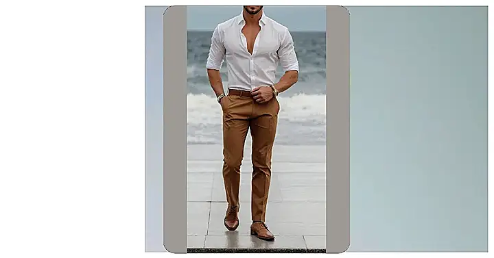 So, you want to rock a men’s shirt outfit that screams “cool”? This picture is a great example. Notice how the crisp white shirt is the star, but the khaki pants and loafers keep it from looking too formal. It’s like he’s ready for a fancy lunch or maybe just casually winning at life.