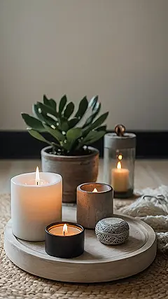 So, you’re thinking about jazzing up your room, but your wallet’s screaming “NO”? No problem! Check out this setup! It’s all about taking simple things, like candles (maybe some you already have) and grouping them with a plant on a cool tray. You could totally find an old wooden platter at a thrift store and give it a makeover with some paint or stain. It’s like magic – instantly turning trash into treasure!