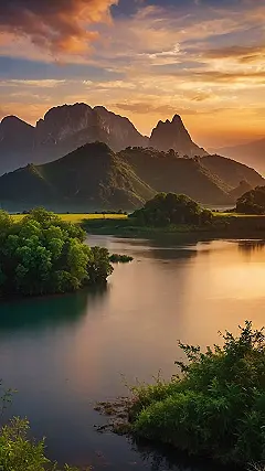 This picture is like nature decided to show off! Look at that river snaking through the mountains like a giant blue ribbon. And the hills are all green and fuzzy, making you wanna just roll down them (but maybe don’t, unless you enjoy a mouthful of grass). It’s like someone painted the ultimate scenic route, and now I’m picturing myself driving down that twisty road in a convertible, wind in my hair, singing off-key to my favorite playlist.
