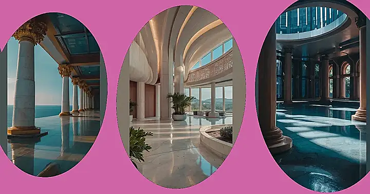 This picture makes you feel like you’re stepping into a secret world. It’s a beautiful hall with big, strong columns like you’d see in ancient buildings, but there’s a twist! There’s a pool of water that reflects the light coming from the skylight above. It’s like a magical dream that you can see in the real world. It’s a reminder that even in our everyday lives, there are moments of beauty and wonder waiting to be discovered.