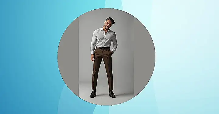 This guy in the picture totally nails the simple but sharp men’s business look without needing a fancy suit coat. Just a crisp white shirt tucked into some smart brown pants with a cool belt is enough to make you instantly look like you mean business, even if your biggest decision today is what to have for dinner. It’s like a superhero costume for grown-ups, but instead of fighting crime, you’re just trying to look professional, which honestly can feel like a superpower sometimes.