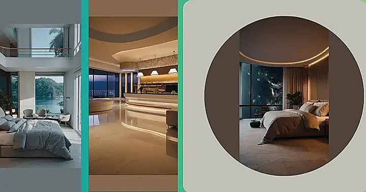 Imagine waking up to the golden glow of the sunrise over the vast ocean, right from your bed! This room looks like it’s straight out of a magazine, with its sleek design and cozy touches. Those warm, inviting lights under the bed make it feel like you’re floating on a cloud. The large windows let in the perfect amount of light, making the room feel bright and airy even at dusk. But the best part is the view! It’s like you’re on a luxurious cruise ship, with the ocean stretching out as far as your eyes can see. This is the kind of room where you could spend hours just gazing at the horizon, dreaming of all the adventures to come.