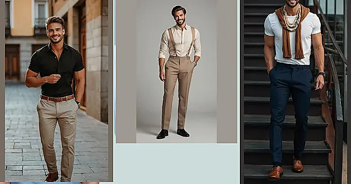 So, this dude is rocking a look your grandpa probably wore on dates, but with biceps that could bench your entire English class. It’s like a mashup of “Mad Men” and a Marvel movie! Seriously though, the black shirt and tan pants combo is a timeless classic. It shows that you’re put-together without looking like you’re trying too hard which is definitely a power move.