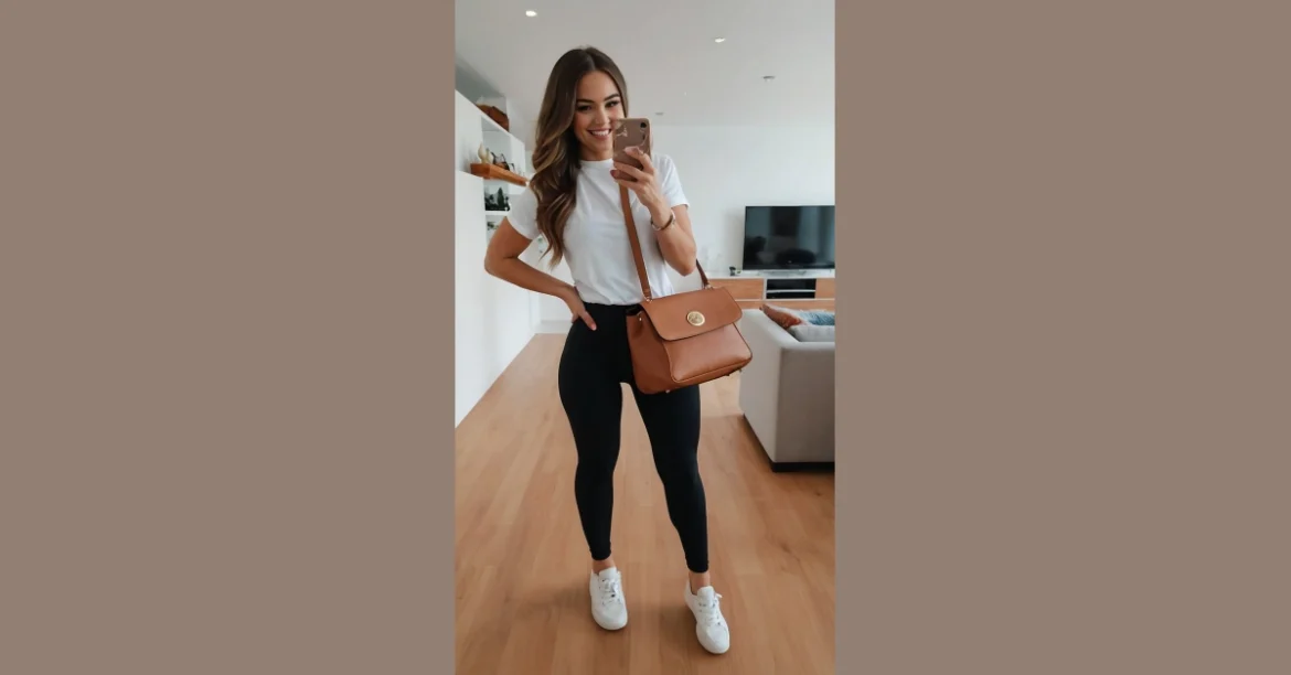 This outfit practically screams “I’m stylish but also, like, super comfy.” Pair it with some fresh white sneakers and suddenly you’re ready to take on the world. Whether you’re hitting the books, grabbing coffee with your friends, or just chilling at home watching TikTok, this leggings outfit is a total win. Now, if only someone could figure out a way to make laundry fold itself… that would really be the *ultimate* uniform.