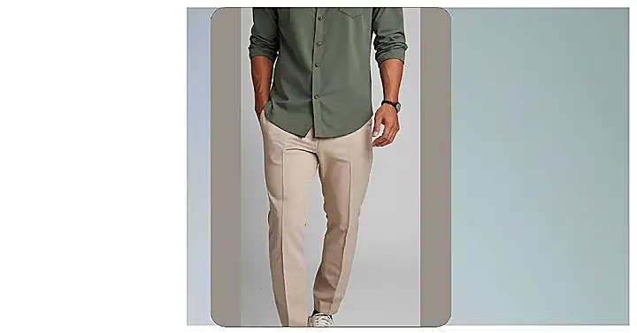 Want to look sharp without looking like you’re trying too hard? This outfit is like the secret cheat code to looking good. That earthy green shirt and those tan pants are a combo that’s both classic and cool. It’s like saying, “Yeah, I woke up looking this awesome,” even if you spent way too long picking out your shoes.