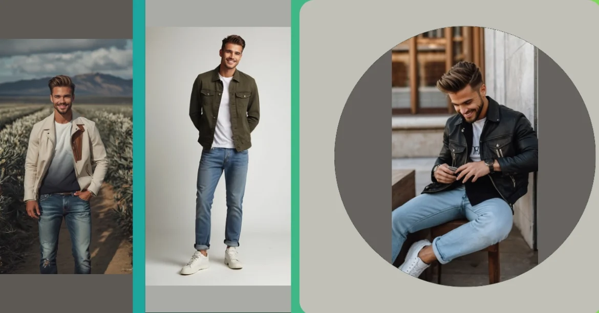 **Paragraph 1:** Hey there, fashion fans! Check out this seriously stylish dude rocking a men’s jeans outfit that’s so cool, it could even charm a grumpy cactus! He’s got on those awesome, slightly distressed jeans – perfect for looking effortlessly cool. And that creamy-colored jacket? It’s like he’s a secret agent blending in with a field of wildflowers. Let’s be honest, the best part of this whole look might just be that dazzling smile. Seriously, it’s brighter than a freshly polished pair of shoes.