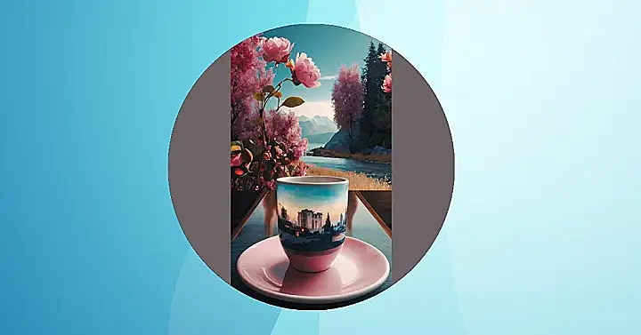 This picture makes me want to get up early and grab a warm drink! It looks like someone is having a cup of coffee or tea while enjoying a beautiful morning view. The mug even has a scene on it that matches the gorgeous landscape. It’s like the mug is saying, “Hey, look at this amazing day! You should get out there and enjoy it!” I bet that coffee tastes even better when you’re surrounded by nature like this. It’s the perfect way to start your day!