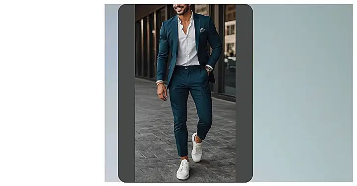 The coolest part, honestly, is those crisp white sneakers paired with the snazzy blue suit. Who knew you could break the old rules and look this good? It’s like formal fashion decided to take a chill pill and invited its comfy cousin, the sneaker, to the party. This look is perfect proof that you don’t have to be super stiff to be stylish. You can totally rock a suit without feeling like you borrowed your dad’s clothes for a weird photo shoot.