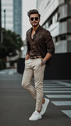 The best part? You can rock this look practically anywhere. From acing that presentation to chilling with friends at the pizza place, you’ll be turning heads without even realizing it. And those crisp white sneakers? They’re the secret ingredient that screams “I’m stylish, but also comfy.” So ditch the sweats (sometimes) and get ready to upgrade your game!