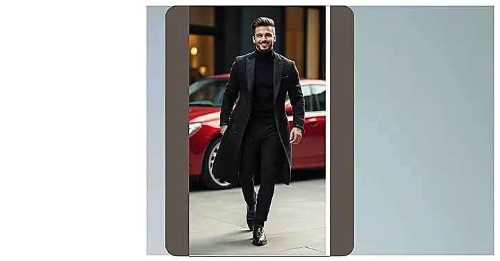Looking sharp doesn’t have to mean emptying your wallet! This dude’s rocking a super classy outfit that’s surprisingly simple. He’s got the all-black thing going on, which is basically the fashion equivalent of a cheat code – it always looks good. Just throw on a turtleneck (totally optional, a regular shirt works too!), some nice pants, and a cool coat like this one, and boom, you’re instantly upgraded from “average guy” to “future CEO.”