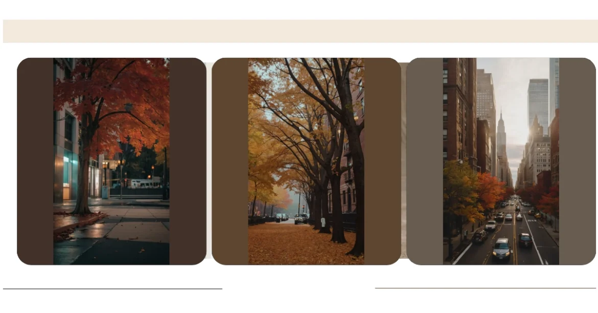 Imagine strolling down a New York City street in the fall. The air is crisp, and the leaves are changing colors like a giant kaleidoscope. It’s like a painting come to life, with red and orange hues blending with the gray of the city buildings. You can almost smell the pumpkin spice lattes and hear the crunch of fallen leaves under your feet.