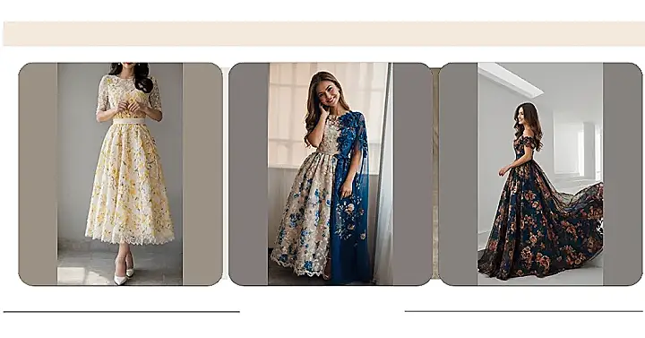 Look at that dress! It’s basically a wearable bouquet of sunshine and fancy lace. You could totally float into a room wearing this and make everyone stop and stare, probably wondering if you just arrived from a secret garden party. Those sleeves are like little works of art, and the way the skirt flows? Definitely gives off main character vibes. It’s the kind of design that makes you think, “Okay, maybe dressing up is kind of fun,” even if your usual style involves maximum comfort and minimal effort.