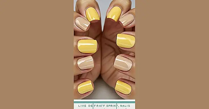 Looking at nails painted this sunny yellow is like getting a little jolt of happiness right on your fingertips. It’s the kind of color that makes you want to skip instead of walk and maybe even hum a cheerful tune. Paired up with that calm, creamy beige color, it’s like a perfect mix of bright energy and relaxed cool, totally ready for whatever fun is coming your way. Seriously, just seeing them makes you feel like you’ve got sunshine on your hands, even on a cloudy day.