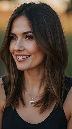 This haircut is like the superhero cape of parenting: it makes you look amazing while still being totally functional! It’s long enough to pull back in a ponytail for those messy moments, but chic enough to wear down when you actually manage to snag a coffee with friends (or hide in the pantry for five minutes of peace and quiet). Plus, those face-framing layers? They scream “I’m a grown-up who has her life together…mostly!”